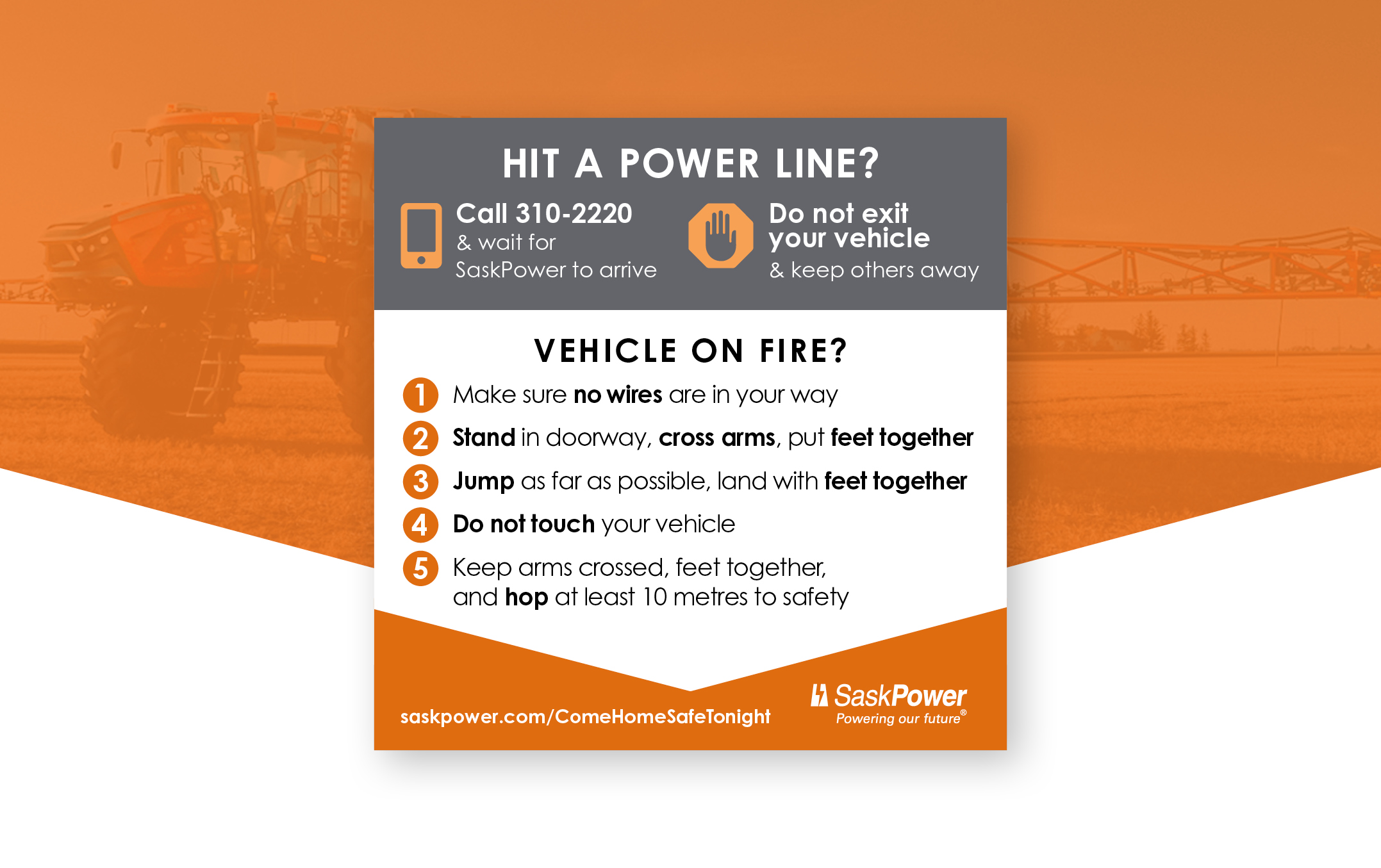 There are more than 300 incidents of farm machinery contacting overhead power lines in Saskatchewan each year. All are preventable. Over half happen during the busy spring seeding season – between April and June.